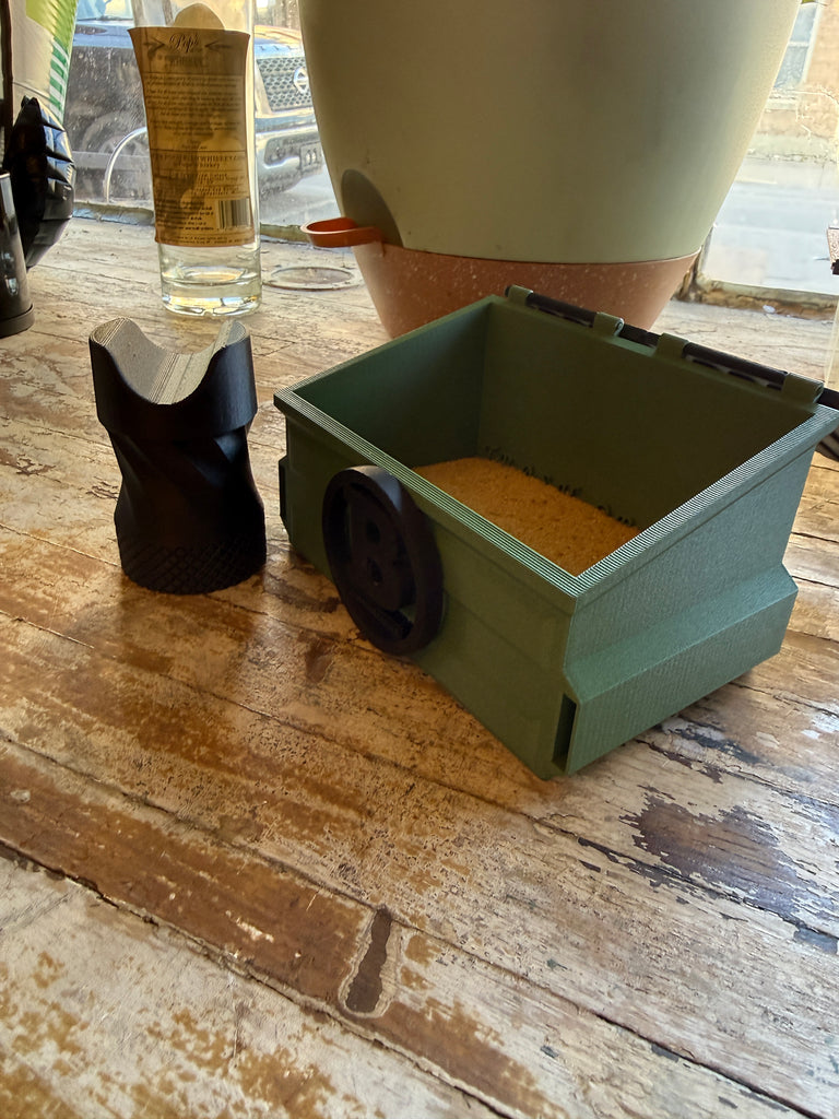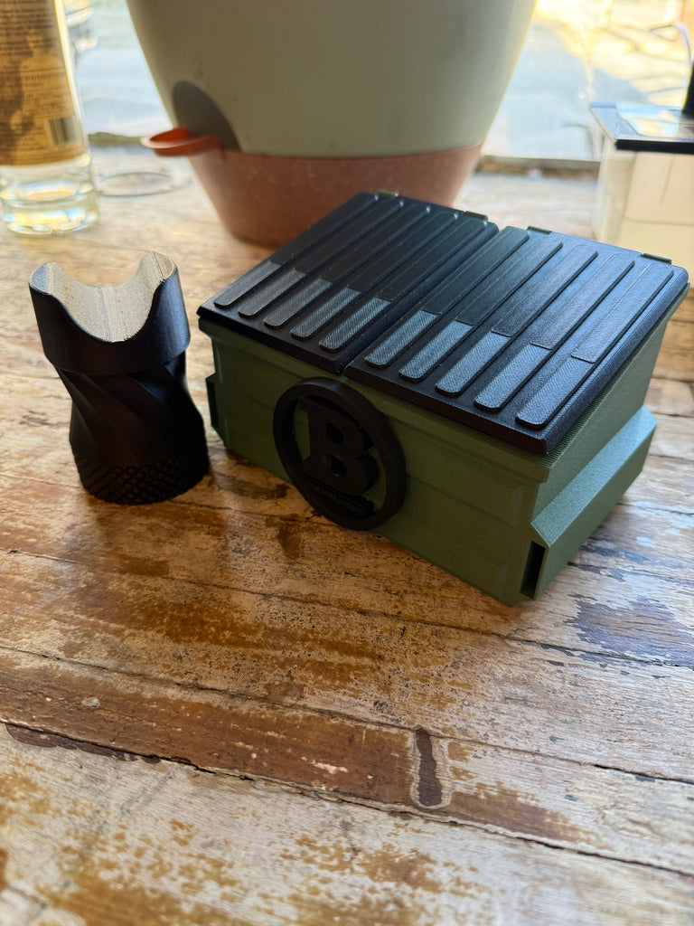 Spice up your lounge with this great, unique ashtray. This 3-D printer dumpster even comes with a cigar rest to hold your favorite stick. This will quickly become your new favorite ashtray!