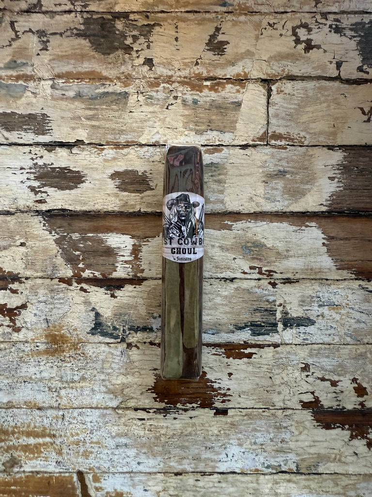 Handcrafted at the Artista Cigars factory in the Dominican Republic, it features a Connecticut Broadleaf Maduro wrapper accented by two green Dominican candela stripes, a Mexican San Andres binder, and fillers of Dominican Piloto Cubano ligero and Nicaraguan tobaccos. Boxes of 20; seasonal, small-batch release. Built for depth and atmosphere, GHOUL leans into a rich, earthy profile driven by its Broadleaf wrapper, with the candela barber-pole adding visual flair and a touch of sweetness on the light. It’s an eye-catching conversation piece that still smokes like a serious blend—perfect for spooky-season events, gifting, or collectors chasing unique Last Cowboy variants.